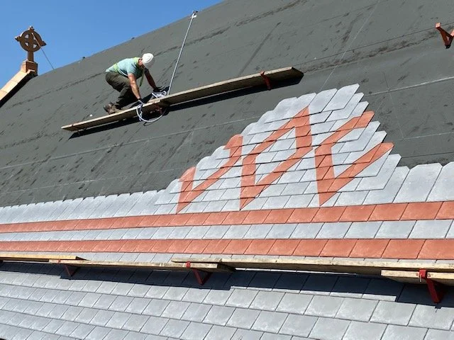 Roofing material purchase; south transept and nave roofing; nave, transepts attic insulation; spire restoration; clock tower access; masonry repairs; fire control panel